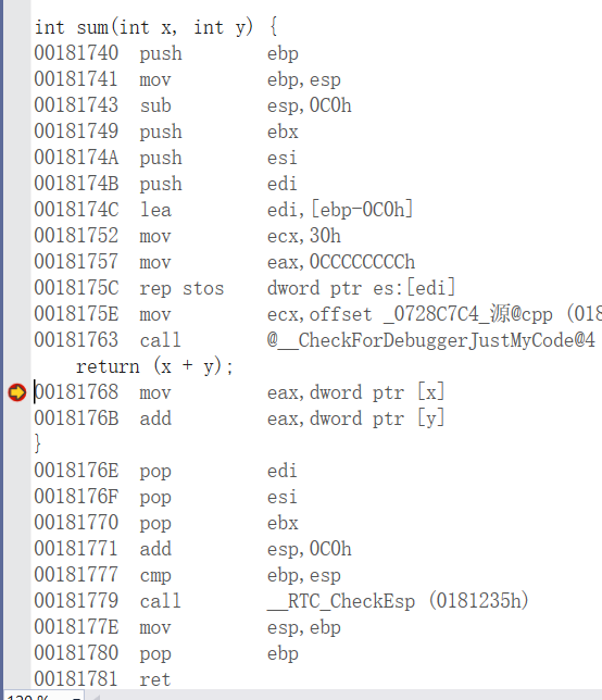 mov dword ptr [c],eax即说明这一点