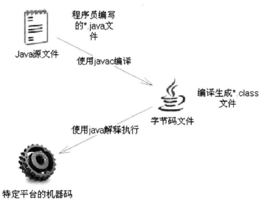 Java 语言比较特殊,由Java 语言编写的程序需要经过编译步骤,但这个编译步骤并不会生成特定平台的机器码,而是生成一种与平台无关的字节码(也就是*.class 文件) 。当然,这种字节码不是可执行的,必须使用Java 解释器来解释执行。因此可以认为: Java 语言既是编译型语言,也是解释型语言。或者说, Java 语言既不是纯粹的编译型语言,也不是纯粹的解释型语言。Java 程序的执行过程必须经过先编译、后解释两个步骤,如下图所示。