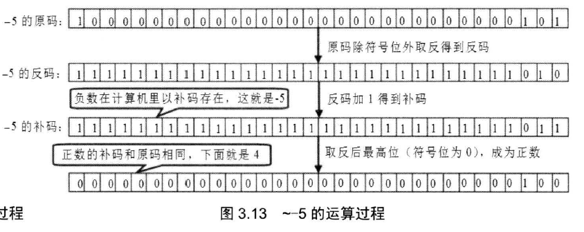- ~ : 按位非。单目运算符,将操作数的每个位(包括符号位〉全部取反。