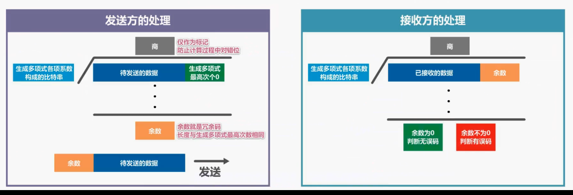 - 接收方通过生成多项式来计算收到的数据是否产生了误码