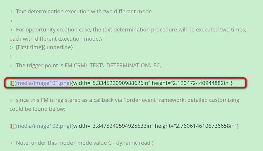 导入后,由于 Word 文档的问题,图片信息可能会带有很多后缀,例如下图的 {width=......}: