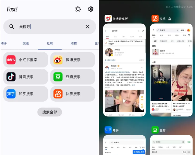 例如想找吴柳芳的信息,不用打开一个个社交平台,直接在输入框里搜即可: