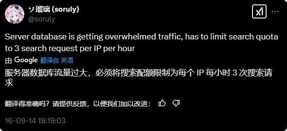 对于次数也有一定的限制。用的人很多,服务器承受不住,作者曾在推特上发表声明:每个 IP 仅每小时限用 3 次。