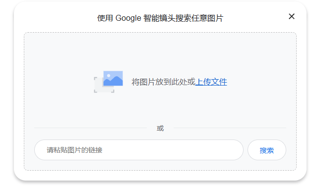 支持上传截图(点击文件夹图标)、将图片拖入页面、粘贴图片链接三种方式进行搜索: