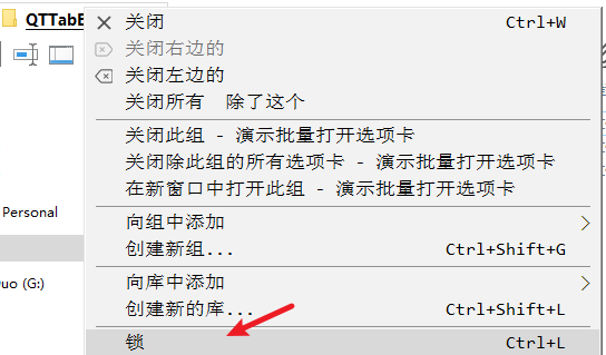 锁定后的选项卡,将不能被关闭,也不能被替换为新选项卡(点击文件夹时,就会打开新的选项卡)。