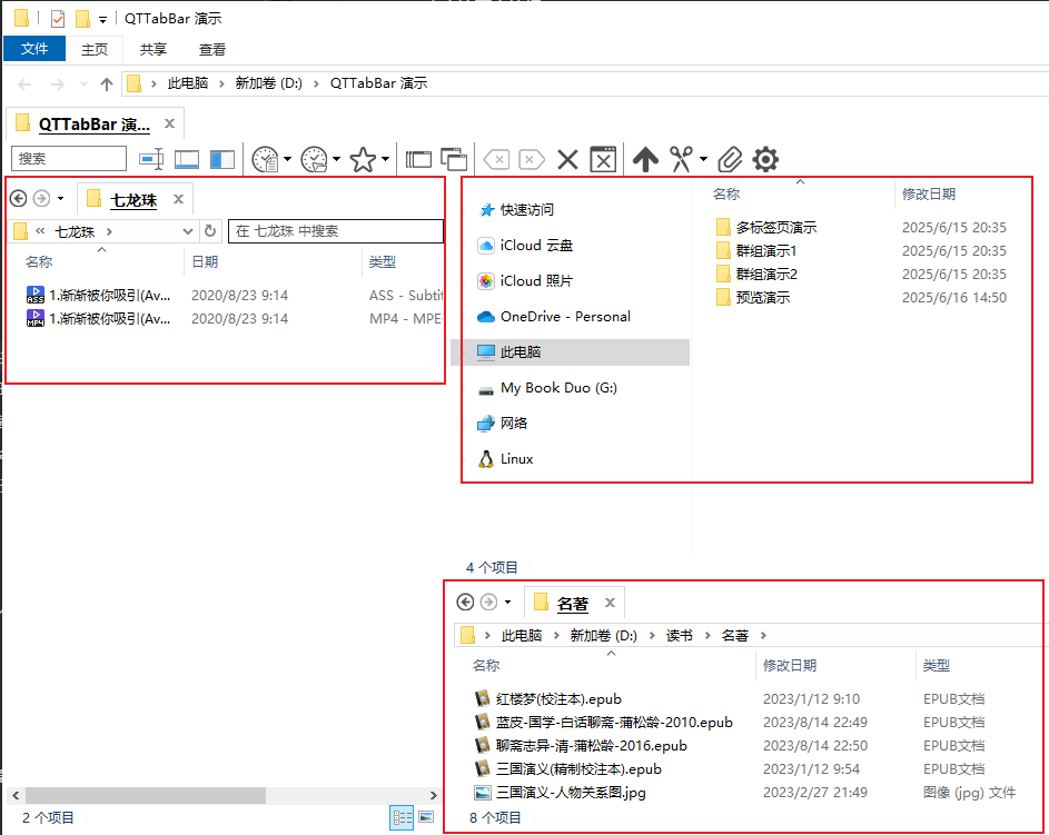 QTTabBar 还支持分屏,即在一个窗口内显示多个文件夹的内容。