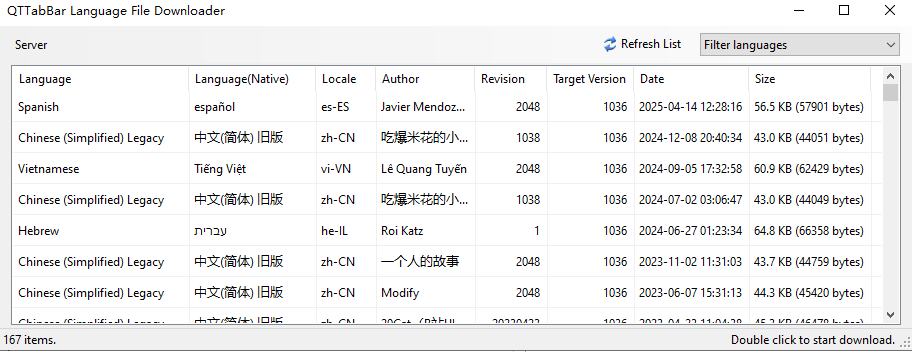 点击「Download language file…」,会弹出语言下载页面,这里有全世界热心网友们制作的各个语言的语言文件,光是中文就不止一个,在这里我推荐的中文语言文件是「吃爆米花的小熊」制作的简体中文语言文件,双击即可下载到电脑。