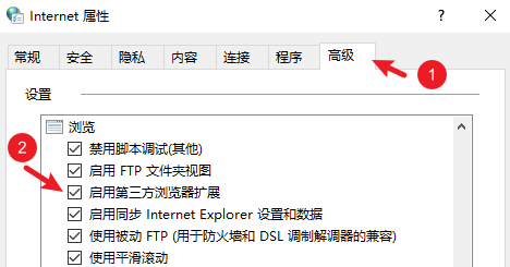 然后一样,启用浏览器扩展,开启加载项。
