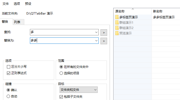 - 重命名:可以对当前文件夹(包括其子文件夹)内的文件、文件夹进行重命名,支持正则