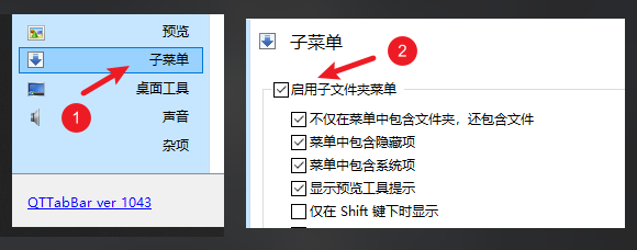 在 QTTabBar 里,你可以通过子菜单来解决这个问题,先开启该功能: