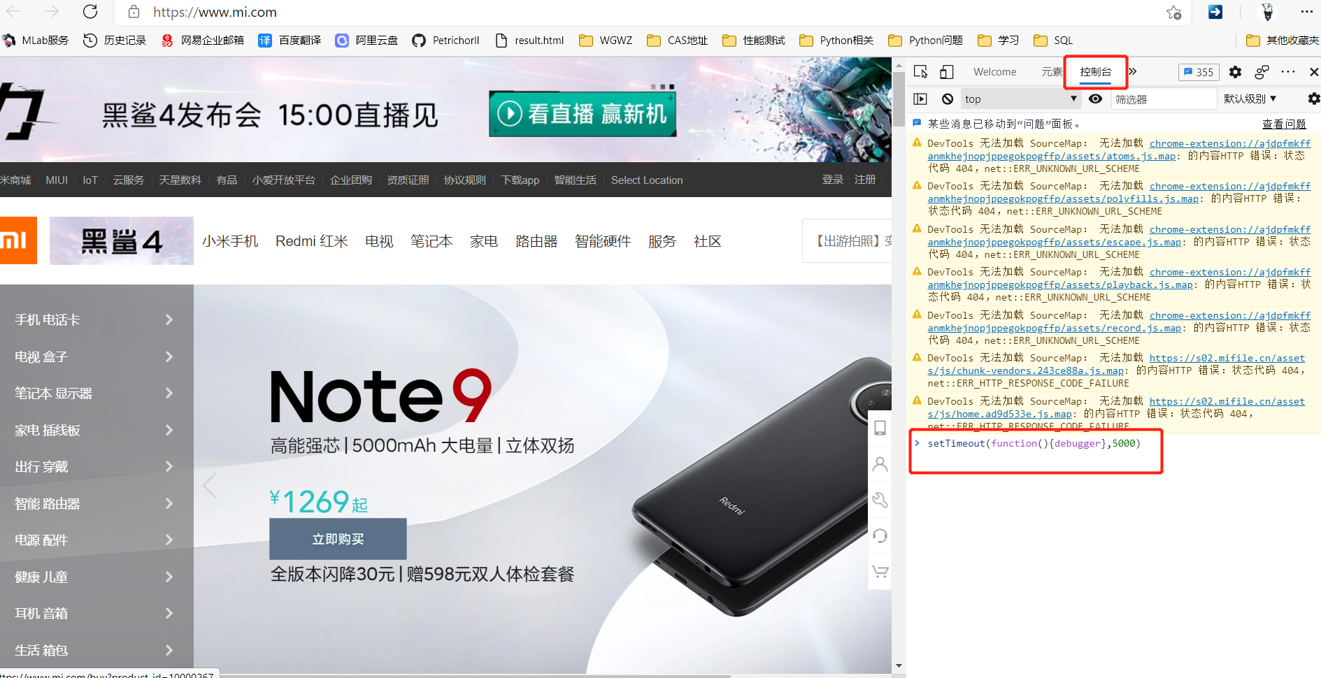 在5秒后执行debugger命令。debugger命令会使网页界面冻住,以供检查元素。