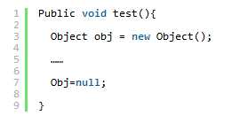 上面这个就没必要了,随着方法test()的执行完成,程序中obj引用变量的作用域就结束了。但是如果是改成下面: