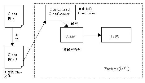 为了防止Class文件被直接反编译,许多开发人员将一些关键的Class文件进行加密,例如对注册码、序列号管理相关的类等。在使用这些被加密的类之前,程序首先需要对这些类进行解密,而后再将这些类装载到JVM当中。这些类的解密可以由硬件完成,也可以使用软件完成。