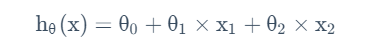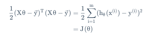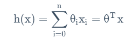 特征X的数目为n,在线性回归中,我们得到一个类似y=θ0+θ1X1+θ2X2的线性模型,则为了统一,设参数向量θ=[θ0、θ1、θ2]的n+1维向量,则相应的,输入特征X也为对应的n+1维向量,其中X0=1。