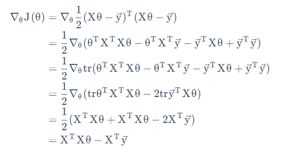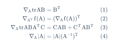 至此我们找到了原优化函数的矩阵表述。根据之前的矩阵导数和迹的性质,我们得到: