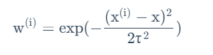 可以看出,离当前预测值越近的训练组,具有越高的权值。最远的则接近于0。其中的τ是带宽,影响着选取主要数据的宽度。