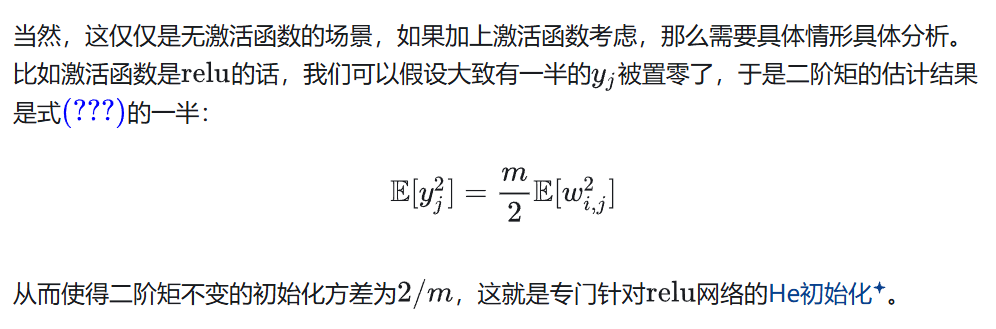 - He初始化:针对ReLU(对于不同的激活函数,初始化的采样来源分布要做相应调整),从N(0, 2/n)中采样全连接权重W