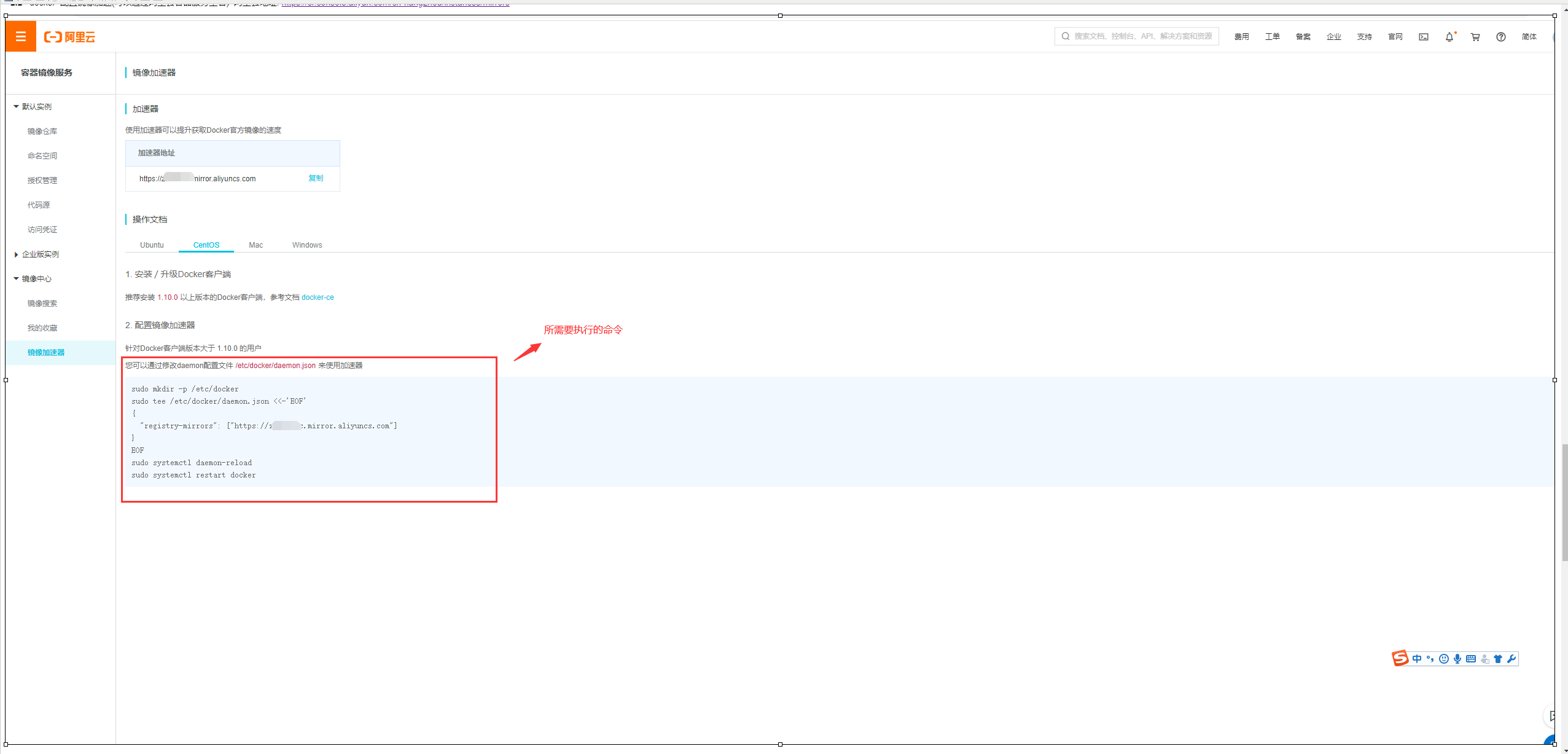 2.2 docker 配置镜像加速(可以通过阿里云容器服务里看) 阿里云地址: https://cr.console.aliyun.com/cn-hangzhou/instances/mirrors