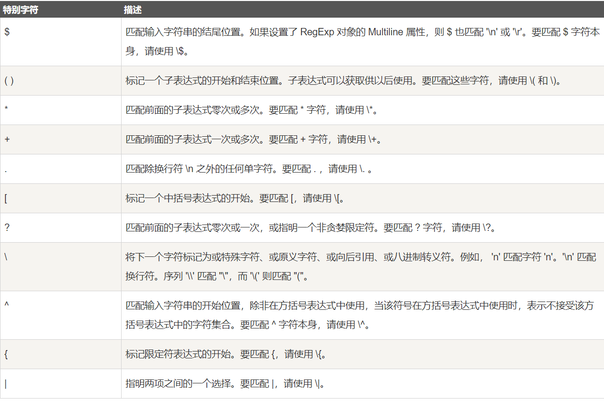 (非打印字符也可以是正则表达式的组成部分,如 \n 等)