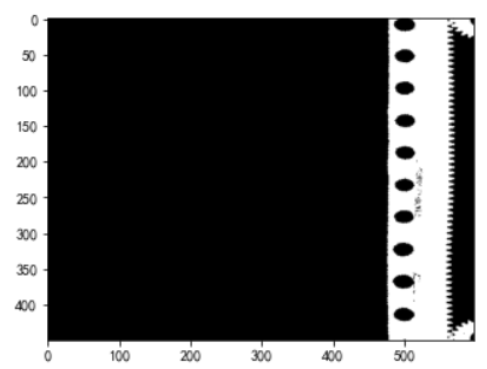 1 def get_center(): 2 '''得到齿轮圆的中心''' 3 def true_line(polar_img): 4 '''判断纵向是否为一条直线''' 5 lengths = [] 6 for row in range(50, 300): 7 line = polar_img[row, ...] 8 len2first_255 = list(line).index(255) 9 lengths.append(len2first_255) 10 d_value = np.ptp(lengths) 11 print(d_value) 12 if d_value < 4: #设置阈值4 13 return True 14 else: 15 return False 16 17 centers = [] #记录圆心位置 18 '''在给定的大致区域内扫描''' 19 for rows in range(225, 230): 20 for cols in range(190, 195): 21 result = cv2.logPolar(Out1, (cols, rows), 110, cv2.WARP_FILL_OUTLIERS) 22 if true_line(result): 23 centers.append((rows,cols)) # col = x, row = y 24 for rows in range(225, 230): 25 for cols in range(468, 473): 26 result = cv2.logPolar(Out1, (cols, rows), 70, cv2.WARP_FILL_OUTLIERS) 27 if true_line(result): 28 centers.append((rows,cols)) 29 30 return centers 31 32 center = get_center() #得到大齿轮圆心为(col=191, row=228), 小齿轮圆心(470, 226)