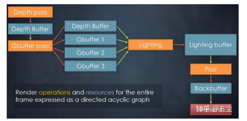 运行在pass建立之后。并非立即执行pass,而是延迟到整个帧已记录到依赖图标数据结构之中后再执行。当完成了对所有pass的收集之后,会执行各类裁剪和优化,可以自动裁剪无用的pass,再按照依赖性的排序顺序进行编译和执行。这样可以做到上层渲染逻辑和下层资源隔离