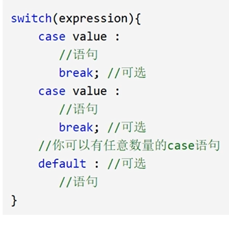 - switch case 语句判断一个变量与一系列值中某个值是否相等,每个值称为一个分支。