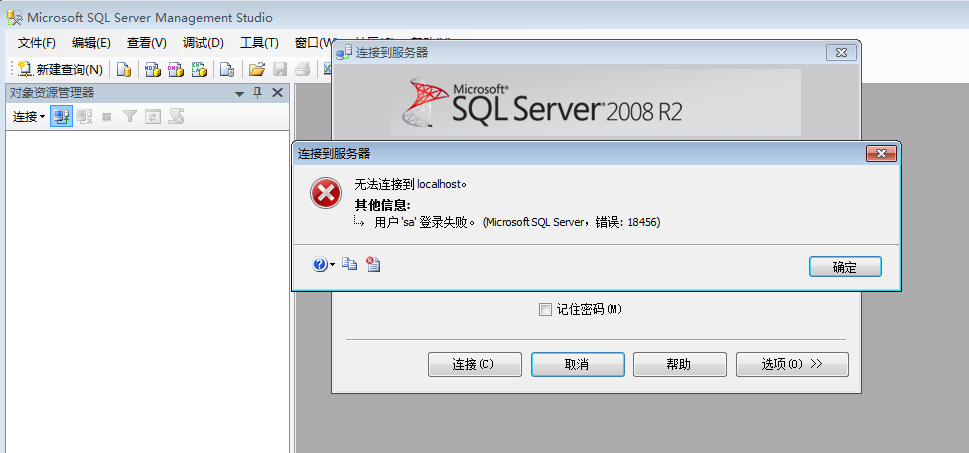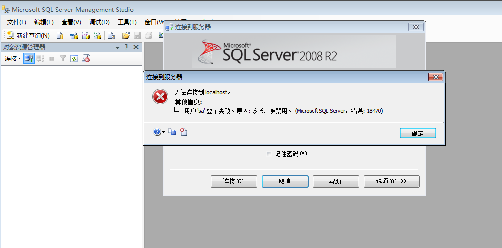在我们安装sql server 数据库完成后,用sql server的身份验证模式登录的时候常常会发生18456和18470的错误,导致无法正常登录数据库,如下图: