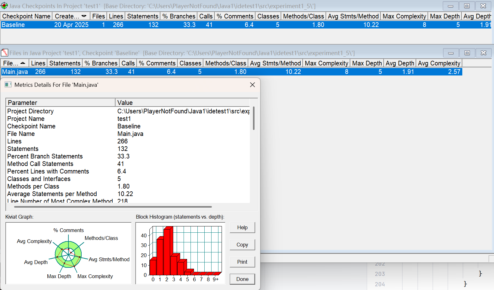 根据报表内容,分支语句占比33.3%,反映出代码中条件判断逻辑较多,需优化条件逻辑,避免过度嵌套。方法调用数为41次,显示出一定的交互复杂度。每类平均方法数为1.8,结构较为简单,但平均每方法语句数10.22,且最大复杂度为8,表明部分方法逻辑较复杂,需关注优化。