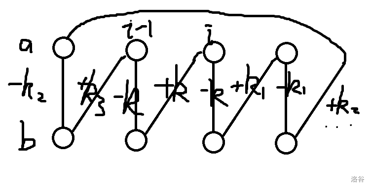 (下面的\(ai\)均已减去\(b(i-1)\)给它的连接数)