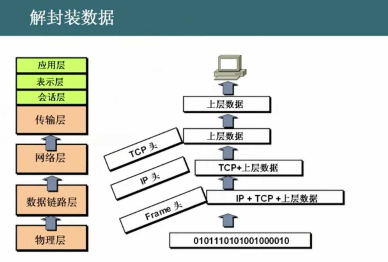 - 当数据在目的设备中沿协议栈向上传递时对其解封和重组;