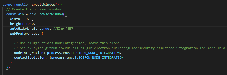 const electron = require('electron') const Menu = electron.Menufunction createWindow (){ Menu.setApplicationMenu(null) }