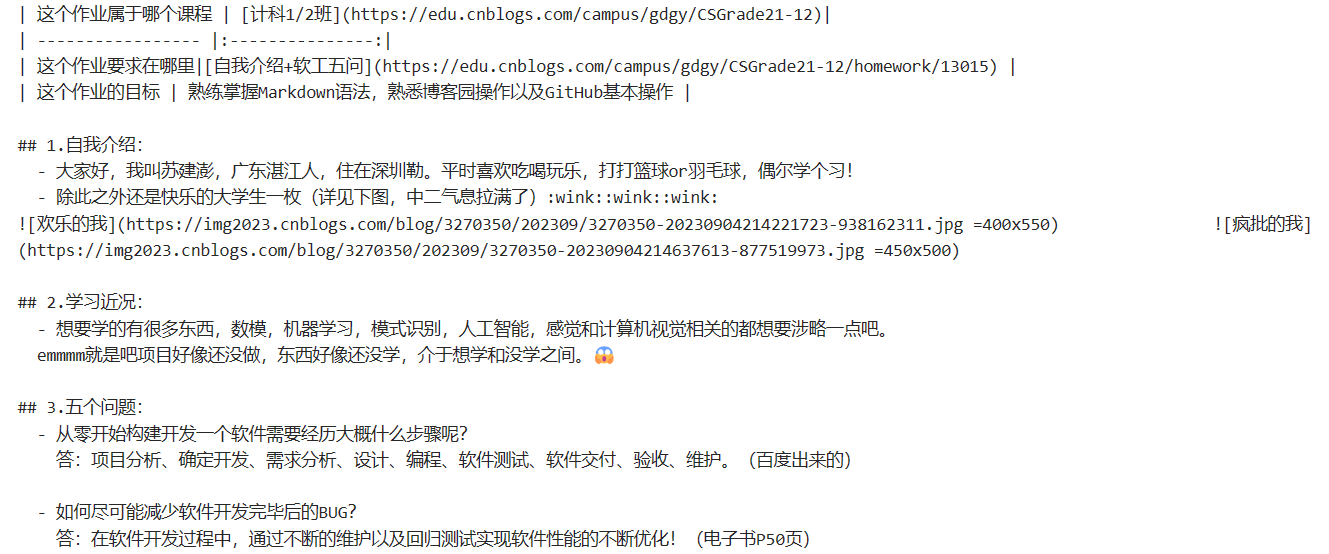 | 这个作业要求在哪里 | 自我介绍+软工五问 |