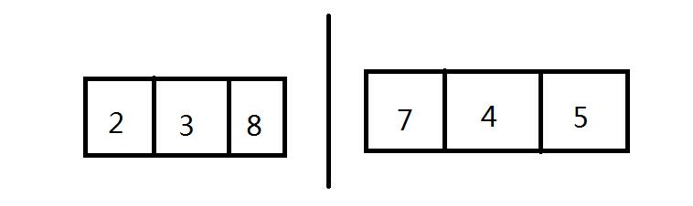 文字表述较为抽象,我们用图形来说明一下直接插入排序的过程,下面将对数组{8,3,2,7,4,5}进行排序: