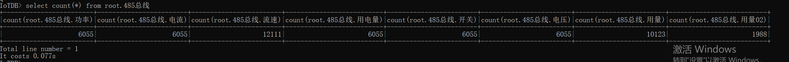 select count(*) from root.485总线