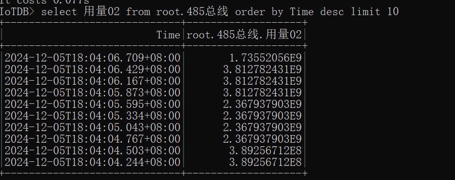 |2024-12-05T18:04:06.709+08:00|root.485总线.用量02|1.73552056E9| DOUBLE|