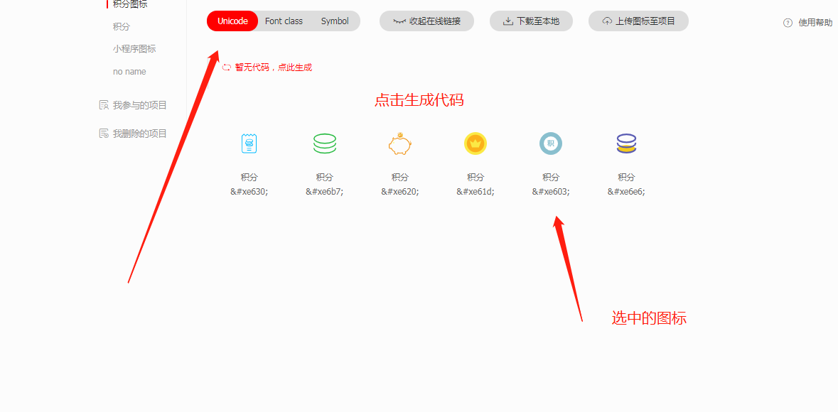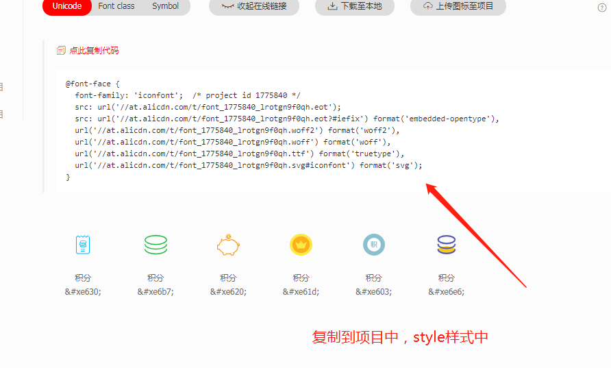 这里的 xlink: href ="#阿里图标复制的类名" 。点击项目的 Symbol 标签,复制代码。