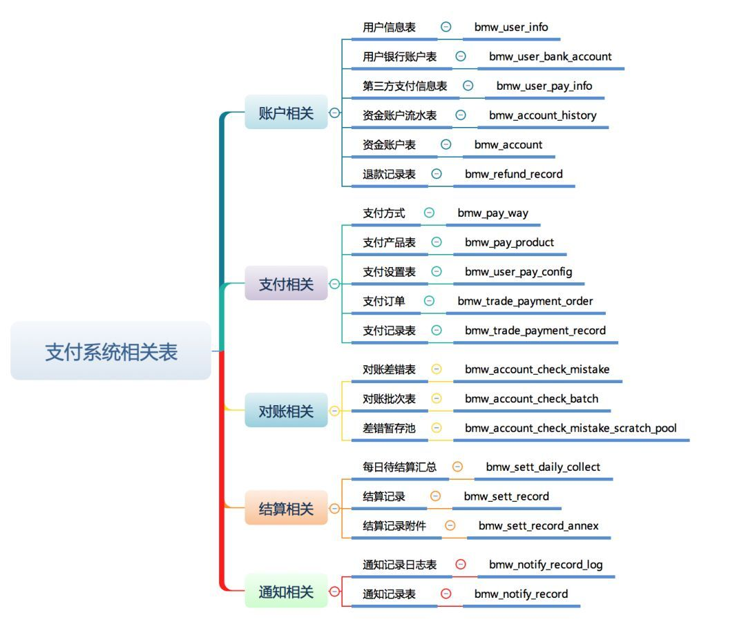 - 支付系统模块:应用管理、商户渠道、账户、对账、支付清算结算管理