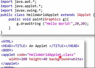 import--导入 extends JApplet/Applet --继承 paint()--绘制 HelloWorldApplet.html