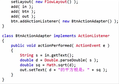 AppGraphInout.java add(xx)加入对象;btn.addActionListener.处理事件 actionPerformed(函数).具体处理事件