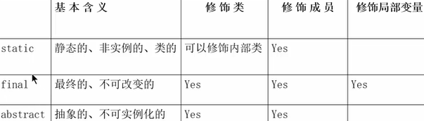 局部类local class:方法中的内部类 不能用public private protected static修饰但可被final abstract修饰 ,可用访问其他外部类成员但不能够访问该方法的局部变量除非是final局部变量