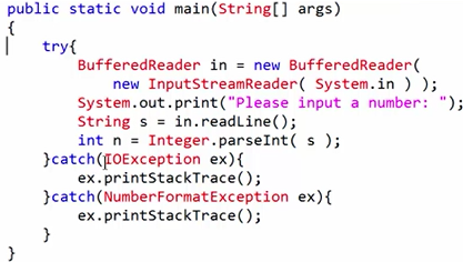 基本写法:try {语句组} catch(Exception ex){异常处理语句组;}