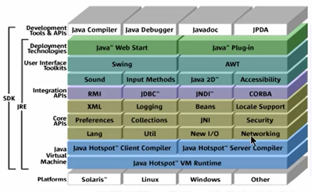 Java开发工具包 JDK=JRE+Tools JDK下载可以只下载JavaSE或与NetBeans绑定的版本,只运行Java下载JRE
