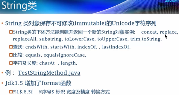 要点:class定义类,public类型与文件名同名,public是公用的,static静态 void没有返回值 主体是一个main方法,带参数 string时字符串,[]是数组,即字符串数组;system.out系统输出,print打印ln换行,printf格式化,format格式化的显示()System.out.print/println/printf