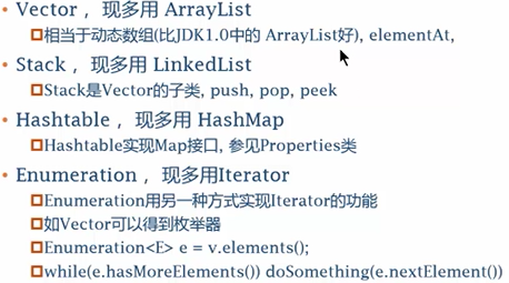Map:键-值对的集合 其中可取到entrySet() keySet() values() Map.Entry是一个嵌套接口 实现:HashMap类 TreeMap类(用红黑树的算法)