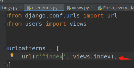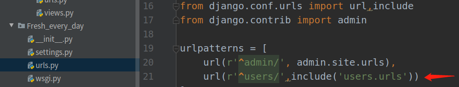 简单测试 创建users 里创建 urls.py 下图加入路径 通过1 找到 2 在到 3 一个流程