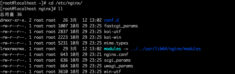 2、直接使用yum命令进行安装 yum install -y nginx,安装成功后默认到/etc/nginx中