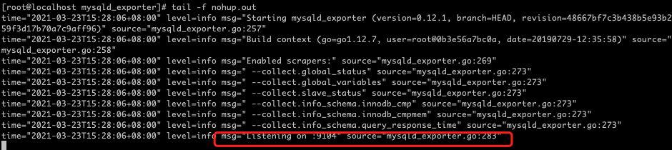 进入到解压后的文件夹中,执行命令:nohup ./mysqld_exporter &