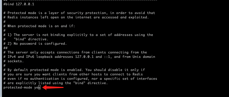 这里的意思是默认情况下只允许本机访问redis,所以我们需要将其注释,那么任何一个ip就可以访问了