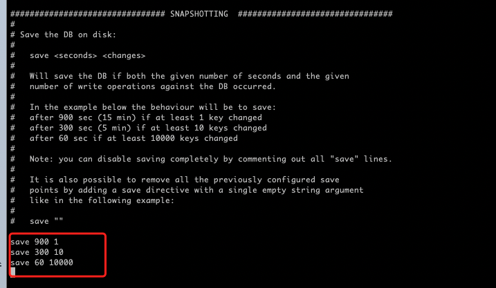 1) save 900 1 save 300 10 save 60 10000 注释掉