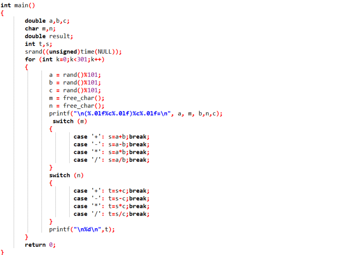 1.根据题目要求讨论分析:使用c++语言编程,需要给出300道四则运算练习题,其中一题包含两个运算符,100以内的数字,不需要答案,另外需要给出300道四则运算练习题并给出答案
